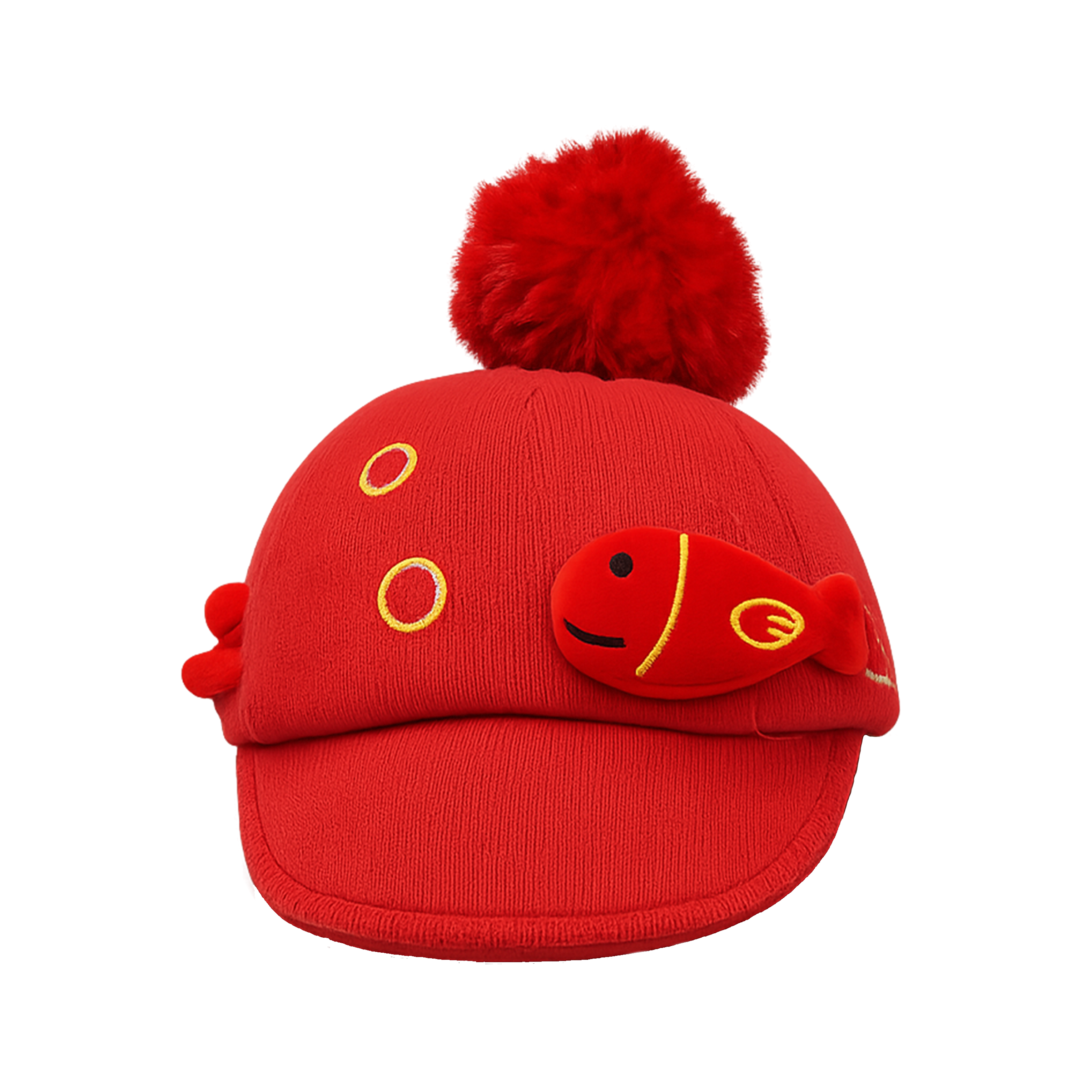 کلاه بچگانه پوم پوم دار طرح ماهی فانتزی کد 210
